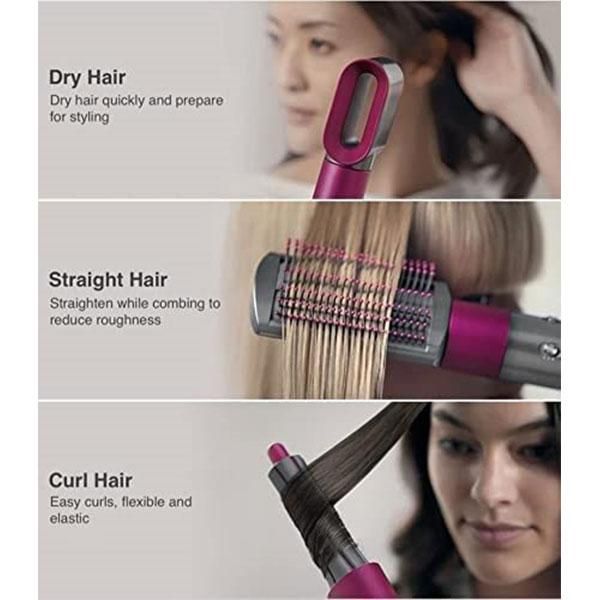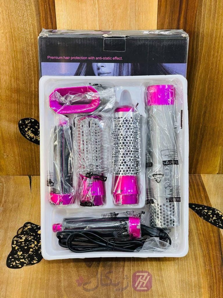 ✨ سشوار حرفه ای 5 کاره ایر استایلر مدل TP-5 ✨ این سشوار به شما این امکان را می دهد که موهای خود را خشک کنید و در عین حال با وجود 5 سری مختلف مدل موی عالی ایجاد کنید. این سشوار با وجود 5 سری مختلف این امکان را به شما می دهد که مدل موی صاف، فر و مجعد ایجاد نمایید. همچنین یک شانه معمولی برای مدل موی معمولی در بسته وجود دارد. سری برس مارپیچ به شما کمک می کند تا فرهای زیبا ایجاد کنید، برس صاف به شما کمک می کند موهای وز را صاف کنید، برس گرد به شما کمک می کند مدل موی عالی ایجاد کنید. شما می توانید آن را به عنوان یک سشوار کلاسیک استفاده کنید.
